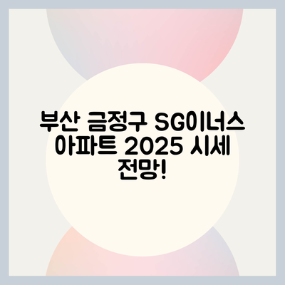 부산시 금정구 부곡동 SG이너스 아파트에 대한 미래 가치를 고민하는 것은 많은 이들에게 중요한 문제입니다.