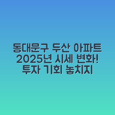 2025년 12월 서울시 동대문구 답십리동 두산 아파트 시세를 예측하기 위해 필요한 단계별 가이드를 제공합니다. 기초적인 데이터 분석을 통해 향후 시세를 가늠해보세요.