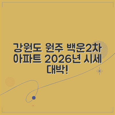 강원도 원주시 태장동 백운2차 아파트의 2026년 1월 시세 예측은 여러 요인에 따라 달라질 수 있습니다. 이를 분석하기 위해, 다양한 측면에서 접근해 보겠습니다.