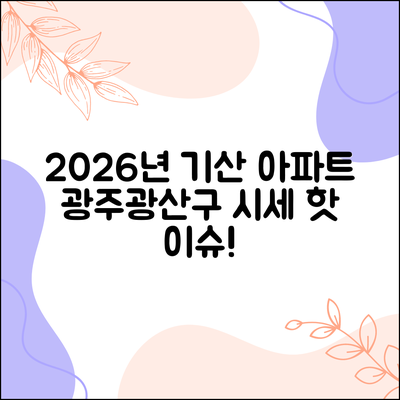 광주시 광산구 월계동의 기산 아파트는 2026년 1월 시세를 기준으로 좋은 투자 기회를 제시합니다. 이번 가이드를 통해 기산 아파트 투자에 대한 이해를 높여보세요.