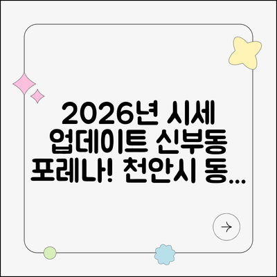 천안시 동남구에 위치한 포레나천안신부 아파트의 시세는 2026년 1월을 기준으로 여러 고객의 고민을 불러일으킬 수 있습니다. 특히, 아파트 매매 및 전세가격 상승에 대한 불안감은 주민들의 큰 걱정거리입니다.