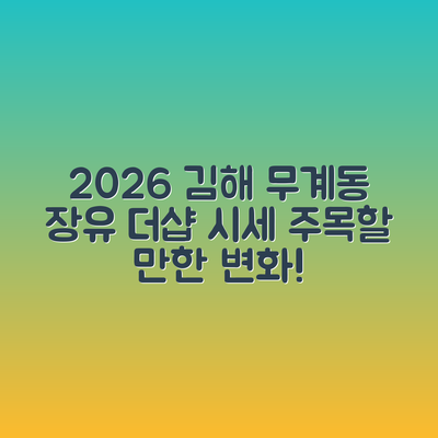 안녕하세요, 여러분! 부동산 투자에 대해 고민하고 계신가요? 오늘은 경상남도 김해시 무계동 장유더샵 아파트의 2026년 1월 시세에 대한 이야기를 해보려 해요. 혹시 이렇게 투자할 만한 곳이 있을까 궁금하셨던 분들, 주목해 주세요!