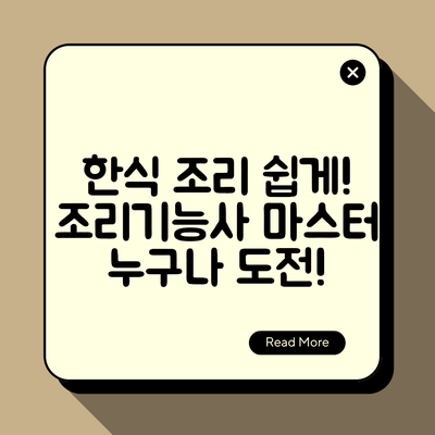 한식조리기능사 자격증은 누구나 쉽게 도전할 수 있는 기회가 제공됩니다. 조리사로서의 기초를 다질 수 있으며, 궁극적으로 자신의 요리 실력을 한 단계 끌어올릴 수 있는 좋은 시작점이 될 것입니다.