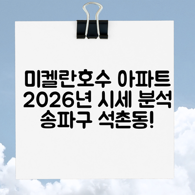 여러분, 서울 송파구 석촌동에 위치한 미켈란호수가(주상복합) 아파트에 대해 들어보신 적 있나요? 이곳은 단순한 거주 공간 이상의 가치를 지니고 있다는 것을 아는 사람만이 알죠. 2026년 1월, 이 아파트의 시세는 어떤 변화가 있을까요?