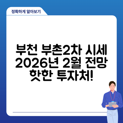 경기도 부천시 오정구 고강동 부촌2차 아파트를 구입할 때에는 다양한 요소를 고려해야 합니다. 특히, 2026년 2월 시세는 중요한 기준이 되므로, 이 시세를 바탕으로 한 분석이 필요합니다.